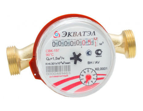 Крыльчатый счетчик СВК-15Г производства ООО «Торговый дом «Экватэл» используется для учета объема холодной и горячей воды проходящей по водопроводу. Счетчик безопасен и может применяться для учета расхода питьевой воды – по гигиеническим показателям соответствует Единым санитарно эпидемиологическим и гигиеническим требованиям и имеет соответствующее заключение. Монтаж счетчика можно осуществлять горизонтально или вертикально, благодаря чему он легко впишется в систему учета и современный дизайн. Легкость монтажа и демонтажа является исключительным достоинством данной СВК-15Г, особенно при наступлении срока плановой поверки. Счетчик имеет компактные размеры и не занимает много места после монтажа. Параметры устойчивости к влажности и температурному воздействию соответствуют нормам утвержденным в ГОСТ 12997.